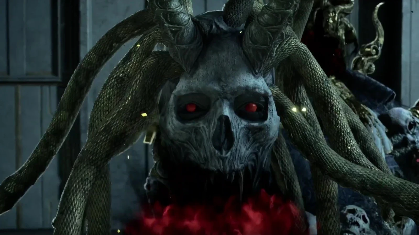 Внешний вид жуткого лика отсылает к легенде о взгляде Медузы Горгоны и имеет схожий эффект. Попавшие в область действия персонажи каменеют, к счастью, временно. Однако это не единственная способность головы. Она также испускает «режущий» луч чистой энергии.
