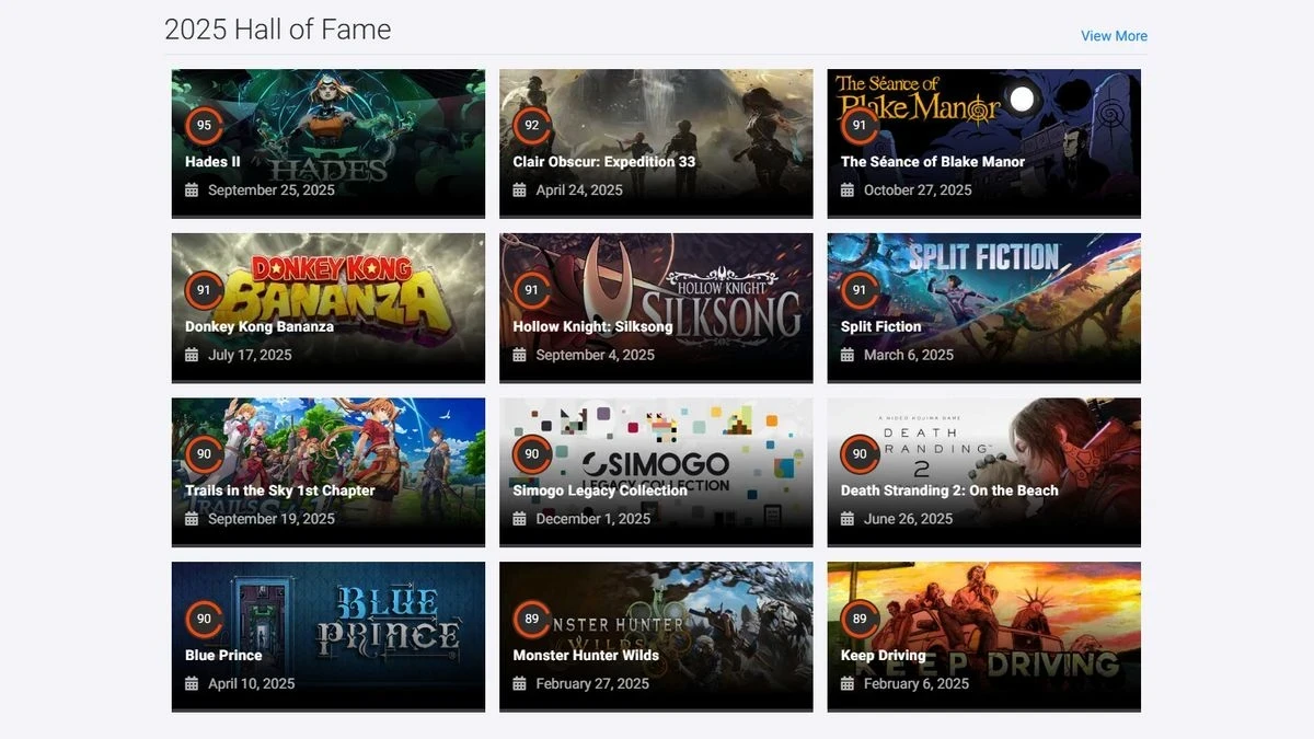 На втором и третьем местах расположились Clair Obscur: Expedition 33 и The Seance of Blake Manor с результатами в 92 и 91 балла соответственно.