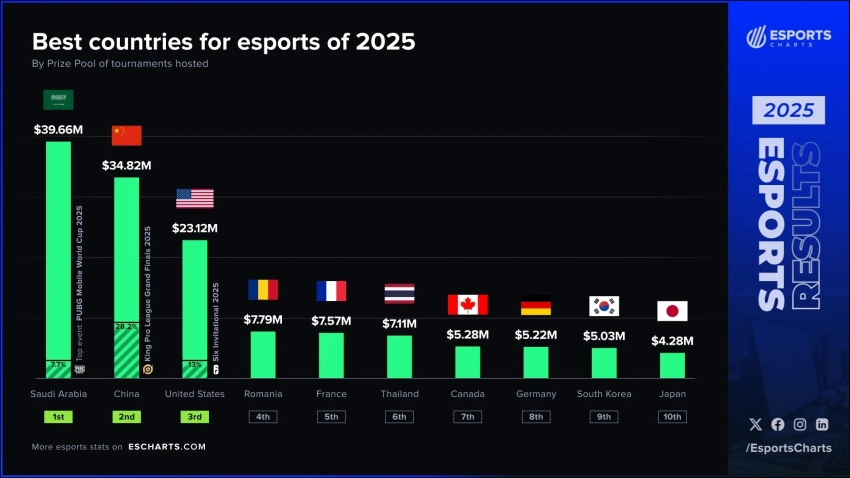Саудовская Аравия обошла Китай и США по сумме призовых в киберспорте за 2025 год