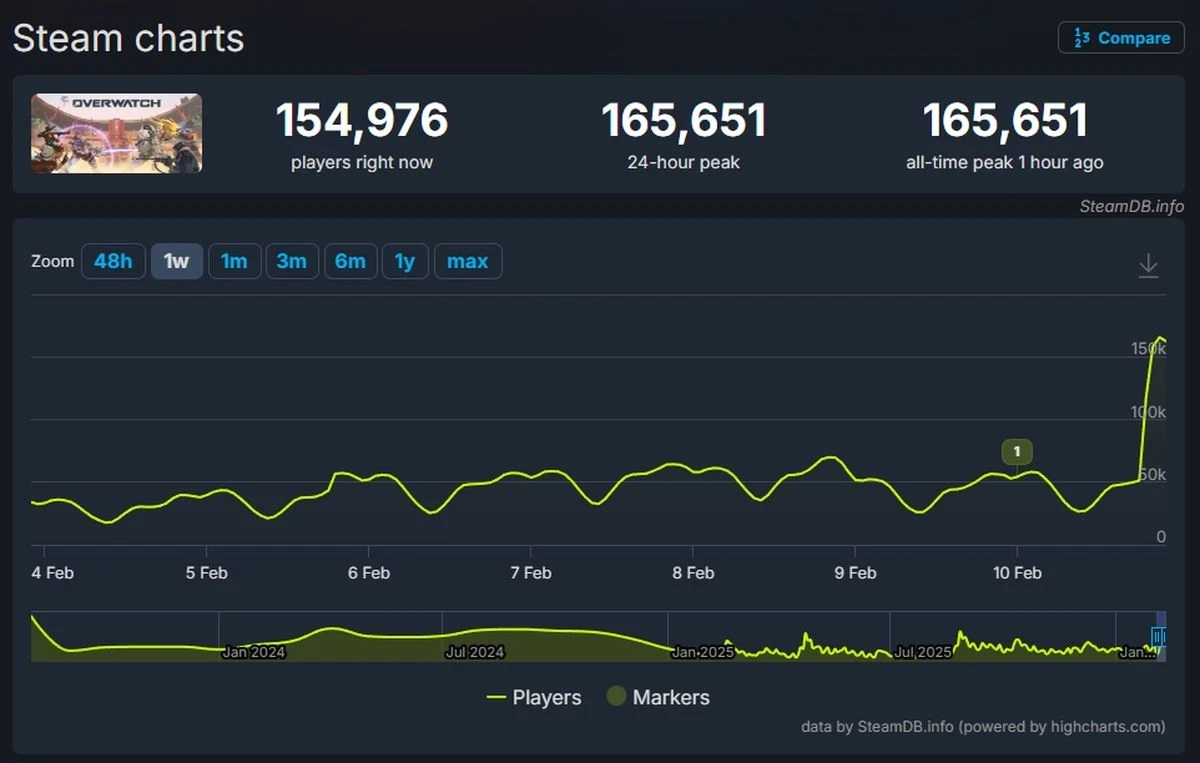 Обновлённая Overwatch установила новый рекорд по пиковому онлайну в Steam